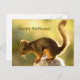 Foto av en söt ekorre på en cookie burk. Douglas-ekorren kastar på locket på en vit och blå keramisk kaka burk på den sena eftermiddagen sol med vackert solbelyst träd i bakgrunden. Vad för slags kaka är en ekorres favorit? Jordnötssmör, naturligtvis!