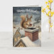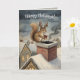 Cute Squirrel Playing Santa Drawing Christmas Kort