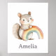 Lägg till en söt vattenfärgsberöring till din baby-barnvakt med det här Cute Squirrel-väggutskriften. Den här moderna designen har en vidsträckt baby-ekorre som håller en boho-regnbåge och är perfekt att dekorera ett baby-rum eller ge till nya föräldrar. Lägg till en personlig namn för en speciell, unik beröring!