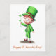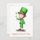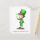 Ett enkelt och roligt av St. Patrick-Day-vykort med en leprechaun-illustration som håller ett par schrock klöver. Illustrerad och designad av Patricia Alvarez.