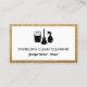 Cute-affärskortet för en städning tjänst i en svart och vit design som ramats av ett faux guld glitter gräns. En bucket soapy vatten, en damm och en sprejpis flaska. Rengör svart typsnitt mot en vit bakgrund.