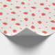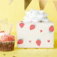Cute wrapping paper for gifts on Valentine's day with strawberries and hearts pattern. Pastel red, yellow and blue colors.