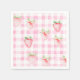 Cute Strawberry Berry Rosa Gingham Brithday Napkins