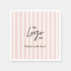 Charming striped business napkin design perfect for bakeries, cafés, and sweet shops! The front side features a clean logo template framed by light pink and ivory stripes for a cozy, inviting vibe, with baked with love in dark green modern script typography, balancing warmth with sophistication. Ideal for branding, customer loyalty, and adding a professional touch to your pastry business.