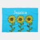 Cute, modern tehandduk med tre solblommor. Du kan till och med anpassa bakgrunden till deras favoriter färg. Designad av Thisisnotme©