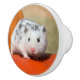 Vita Sprinkled Polywhite Syrian Hamster, vita päls med små svarta prickar, dessa söta små husdjur kallas också Dalmatian Hamster. Foto taget av Katho Menden, den här keramiska knoppen för att dekorera möbler är en fantastisk presentidé för hamster och djurälskare. http://www.zazzle.com/kathom_photo - Om du ser en design som inte finns på din önskade produkt, tveka inte att kontakta mig genom min butik och jag skapar produkten åt dig.
