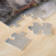 En liten, söt brun tabby som ljuger på stenmark och leker med en fallande Platanus löv. Det här pusslet är en presentidé för kattälskare. Ett fint kattfoto taget av Katho Menden i Grekland.