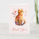 Ett stort tack med en bra illustration av vattenfärgen. En orange tabby katt tittar vänligt sinnad och lycklig med hjärtan snurrande runt.