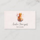 Affärskort med en bra vattenfärgbild. En orange tabby katt tittar vänligt sinnad och lycklig med hjärtan snurrande runt.