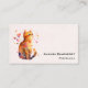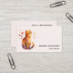 Affärskort med en bra vattenfärgbild. En orange tabby katt tittar vänligt sinnad och lycklig med hjärtan snurrande runt.