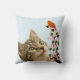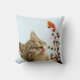Cute Tabby katt och Little Bird on Light Blue Kudde
