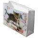En gåspåse med ett lustigt foto av tabby katt. Hair på ryggen höjdes något och han har ett överraskande uttryck på sin ansikte. Tur och förtjusande. Ljuger dig. :