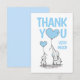 Tack för att du har kort i blått vitt färg. Vattenfärgad elefant (mamma & me) i grått, svarta och blå tecknader. Perfekt för elefanttema för pojke. Tomt kort - rum till skriva för personligt meddelande.