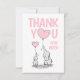 Tack för att du har kort i blått vitt färg. Elefant (mamma & me) av vattenfärgen tecknad i grått-, svart- och rosa-ballonger. Perfekt för elefanttema för flicka. Tomt kort - rum till skriva för personligt meddelande.