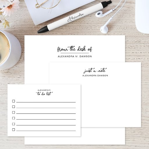 Svartvit tackkort i söt skript med namn. Ytterligare skrivutrymme på baksidan.