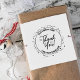 Den här "Tack" gummiproppen frimärke har en söt design med hjärtan och en cirkel.