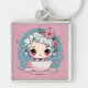 Cute Tea Kopp Doll Keychain Fyrkantig Silverfärgad Nyckelring