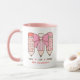 Sip your morning "teacher fuel" from this cute girly Valentine's Day mug. The design features vintage-style pencils with hearts and a trendy coquette bow. The "Teach Love Inspire" text is separated by tiny hearts for an extra sweet touch. Customizable Name field included so it never gets lost in the teacher’s lounge!
