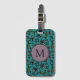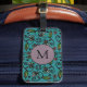Cute Teal Blommönster Monogram Bagagebricka