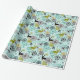 Cute Teal Blue Grönt Blommigt och Hjort Art Mönste Presentpapper
