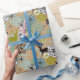 Cute Teal Blue Grönt Blommigt och Hjort Art Mönste Presentpapper