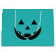 Cute teal och svart Jack o lantern-pumpa ansikte-skämtsamt, halloween Large Gift Bag. De här påsarna är underbara för Halloween bus eller godis, godis, treat, presenter och favoriter. Finns i många färg och storlekar. Kontrollera resten av insamlingen för ytterligare party-leveranser och dekorationer, samordning och matchning.
