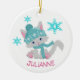 Ett ynkligt litet grått och rosa kattunge har en snöflingshatt och halsduk medan intensivt teal snöflingor sjunker runt den. Vid grund är ditt barns namn i matchande rosa, och allt placeras på en vit bakgrund. Baksidan av prydnadsämnet har en tårsnöflinga mönster gräns, med en vit cirkel i mitten som innehåller anpassningsbarna i fyra fält. Lätt att anpassa sig, och vilken liten flicka som helst skulle kärlek den här vackra prydnaden!