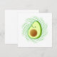 Tecknad stil avokado med störd effekt på bakgrunden. Ge vuxnor och barn en idé om att kärlek avokados och hälsosam mat. Kortet är tomt i baksidan för handskrivna meddelanden.