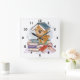 Cute Tecknad Bear Reading Bokar Fyrkantig Klocka