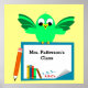 Anpassa det här personligens klassrum poster av en tecknad fågel på vit banderoll som är tryckt med lärarens namn, penna och bokar i förgrunden. Text och bakgrund färg kan ändras.
