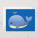 Cute Tecknad Blue Whale Spouting Vatten Vykort