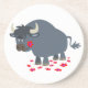 Cute Tecknad Bull och Red Bloom Underlägg Sandsten