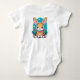 Den här fina T-shirt-designen har en charmerande tecknad med framstående, skrymmande öron och ett sött uttryck. Bålen, färgad i varma brunskuggor med vita accenter, har rosiga kinder och en liten hjärtformad näsa. Den sitter mot en ljusblå bakgrund som bleknar till vitt, vilket antyder en himmel eller drömmiljö. Omgivande av bunnyt är stiliserat vegetabiliskt inslag och ömtåliga blommor, vilket ökar formgivningens visuella karaktär. Perfekt för alla som kärlek söt och lekfull djurgrafik.
