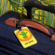 Tecknad stil ökenplanta om en solig dag. Anpassningsbarnas bagagemärken. Gift-idé för barn.