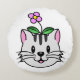Cute Tecknad Cat med blomma på huvudet Rund Kudde