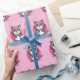 Cute Tecknad Chibi Kawaii Cat on Rosa Presentpapper
