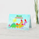 Cute Tecknad Dinosaurs julkort. Fem söta små dinosaurier: rosa baby dinosauurägg, grönt Stegosaurus, orange Diplodocus, gult Triceratops & lila T-Rex Tyrannosaurus Rex i ett lycklig ljust vinterlandskap med snö flingor som faller från himmel och texten "God jul". Inuti kortet finns hela dinosaurifamiljen i ett snöslandskap med anpassade. Lägg till din personliga text! Anpassa med bilder och texter! Ett sött dinosauriekort för julhälsningar i säsong till lite eller stor dinosauer fläkt!
