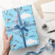 Hand illustrerade kustområdet med papper text med söt tecknade figurer fiskmås på himlar blå bakgrund. En underbar omkastning av sommargåva.