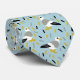 Den här nektien har en mönster över tecknad fiskmås i vitt, grått, svart och orange med matchande konfettbrister mot ljusblå bakgrund.