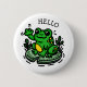 Cute Tecknad Frog på Lily Pad som säger Hej Knapp