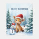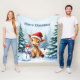 Cute Tecknad Giraffe med Santa Hat & Snögubbe Fleecefilt