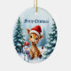 Cute Tecknad Giraffe med Santa Hat & Snögubbe Julgransprydnad Keramik
