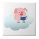 Cute Tecknad Gris Reader på molnplattan Kakelplatta