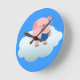 Cute Tecknad Gris Reader på molnväggsklocka Rund Klocka