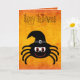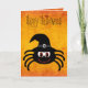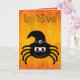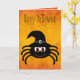 Söt orange anpassade Happy halloween hälsningskort med ett toppen sött lycklig-leende med svart tecknad som bär en häxhatt från Molly Himmel Designer. Ett kort för roligt för barn och vuxnor. Kortet illustreras inuti och ut.
