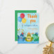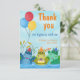 Tack för att du har ett kort för att barn fyller år med hippos som firar födelsedag vid floden med ballonger, födelsedagskalas och spelar musik. All text kan anpassas. #hippo #födelsefödelag #födelsedagstankyoucard #balloons #födelsedagstårta #hippopotamus #flod #gräsglupp#zazzlemade