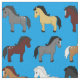 Cute Tecknad Horses Kids Blue Tyg