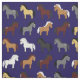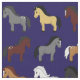 Cute Tecknad Horses Kids Mörk Navy Blue Tyg