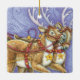 Cute Tecknad jul Jultomten Sleigh Reindeer Julgransprydnad Keramik