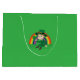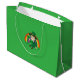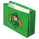 Gift Bag med en Illustration av en söt leprechaun med en grönt kostym, top hat, med en schamprock löv, med en färgstark regnbåge i bakgrunden En perfekt för att fira Saint patrick's day, ritad av Radka2D